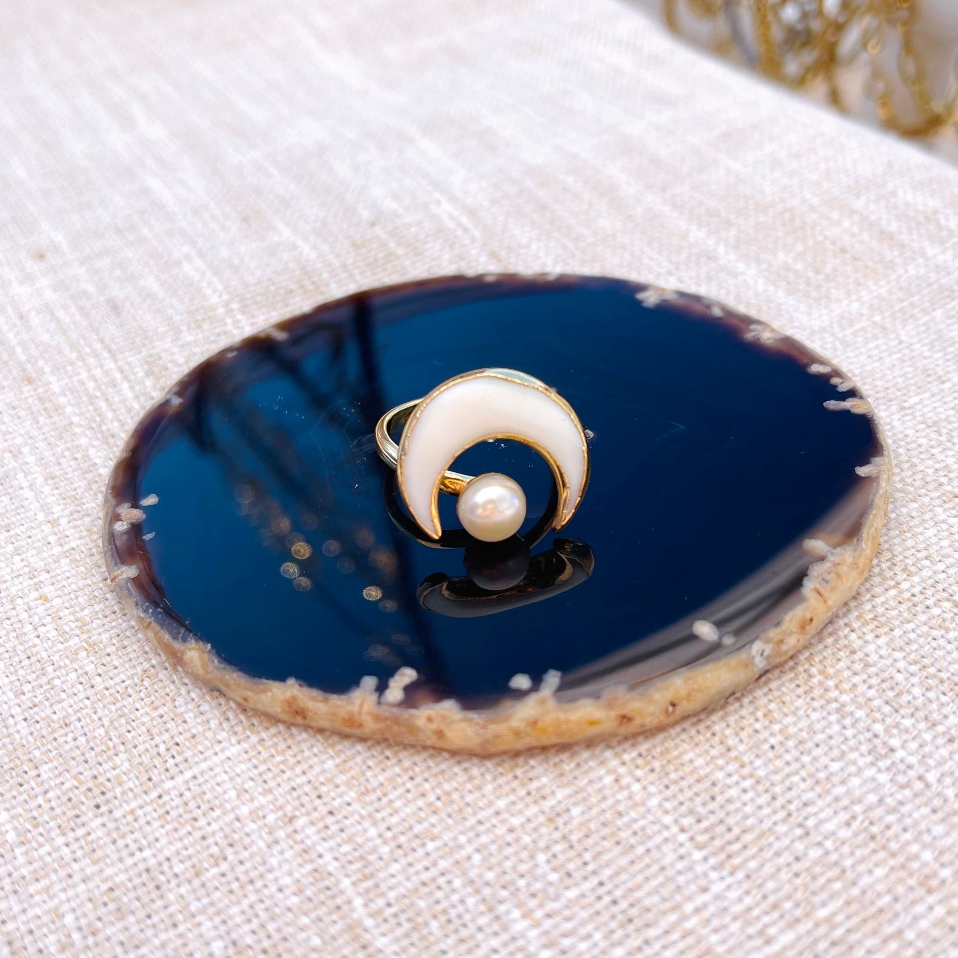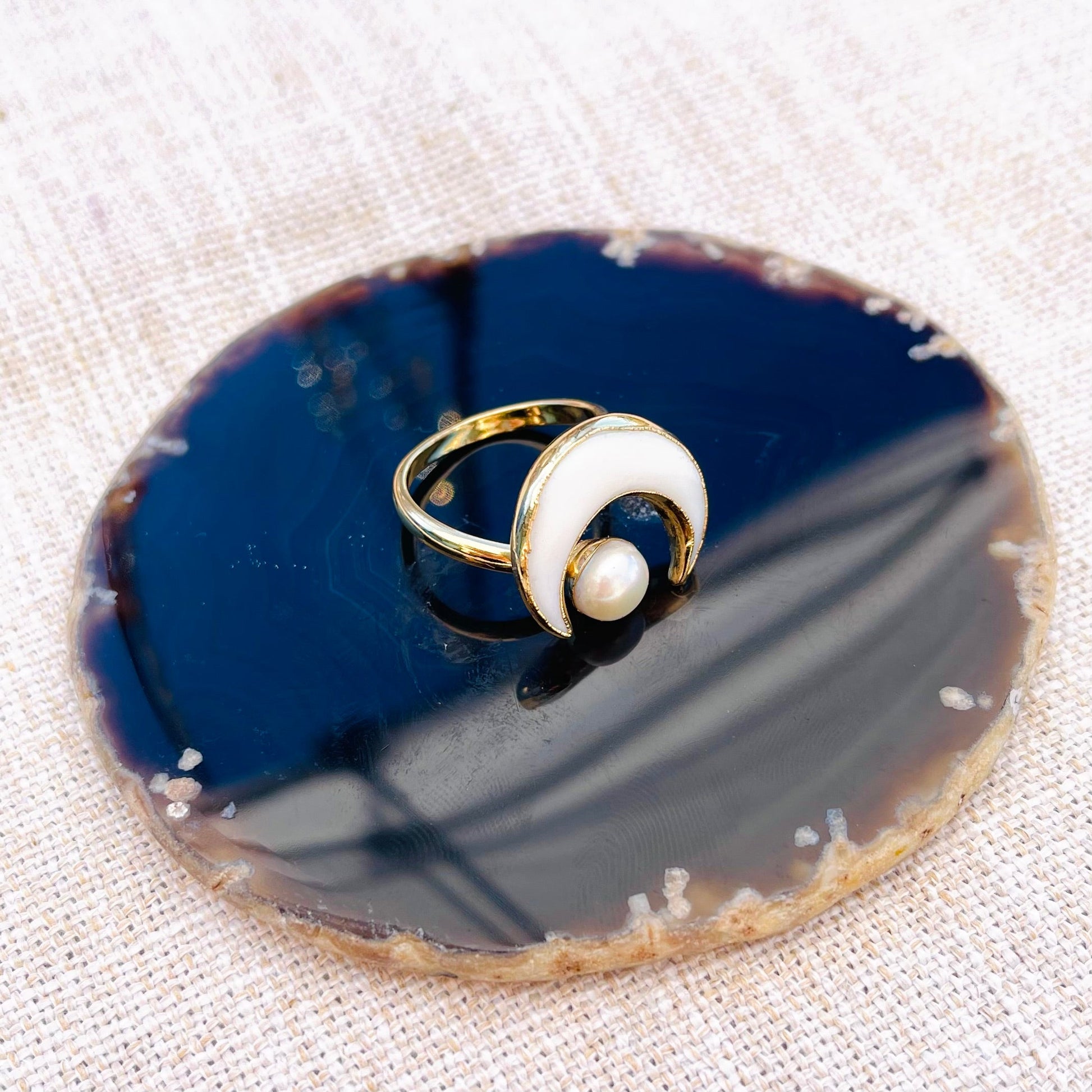 Fresh Water Pearl Moon Ring - Adjustable - Gold