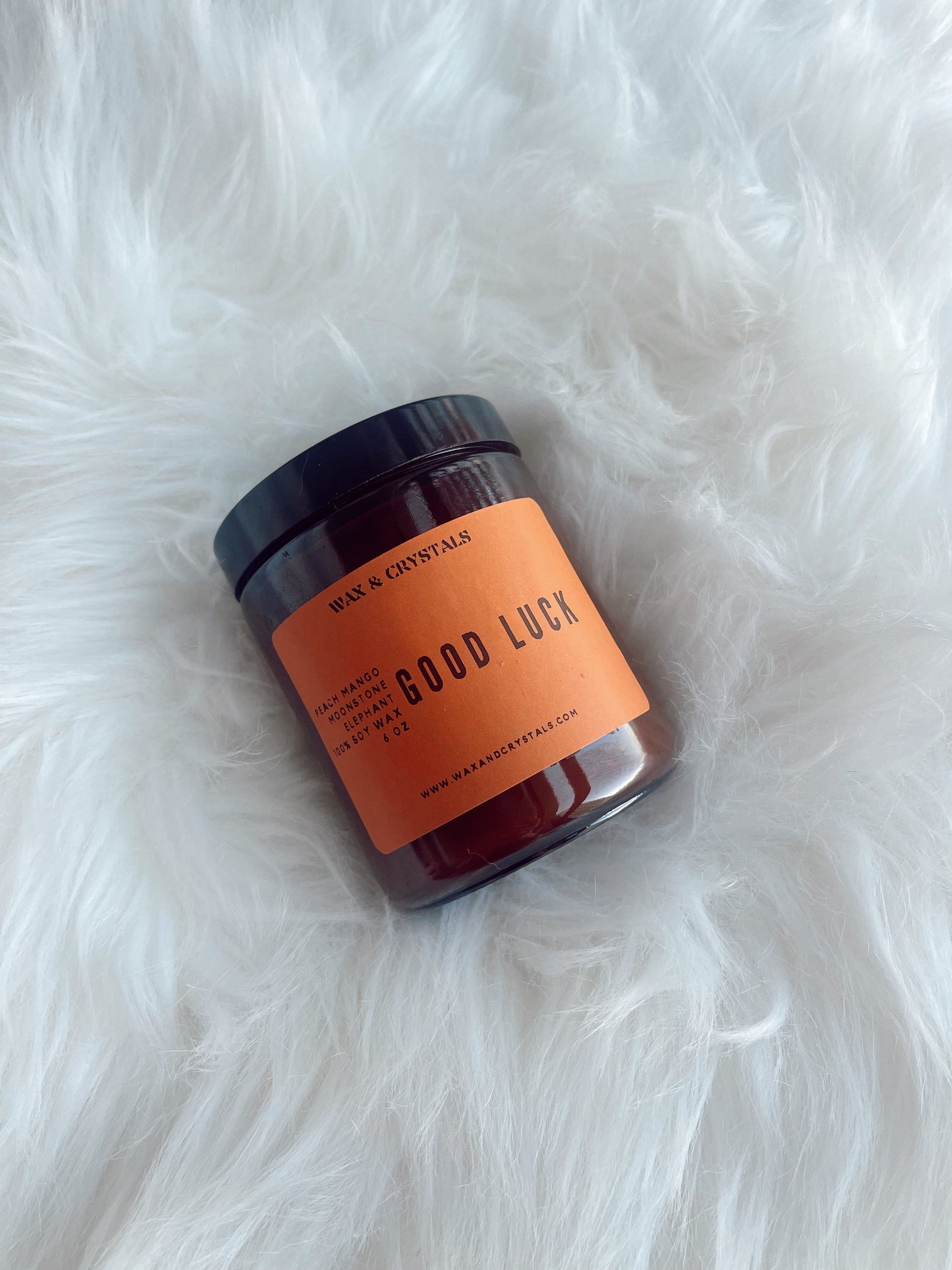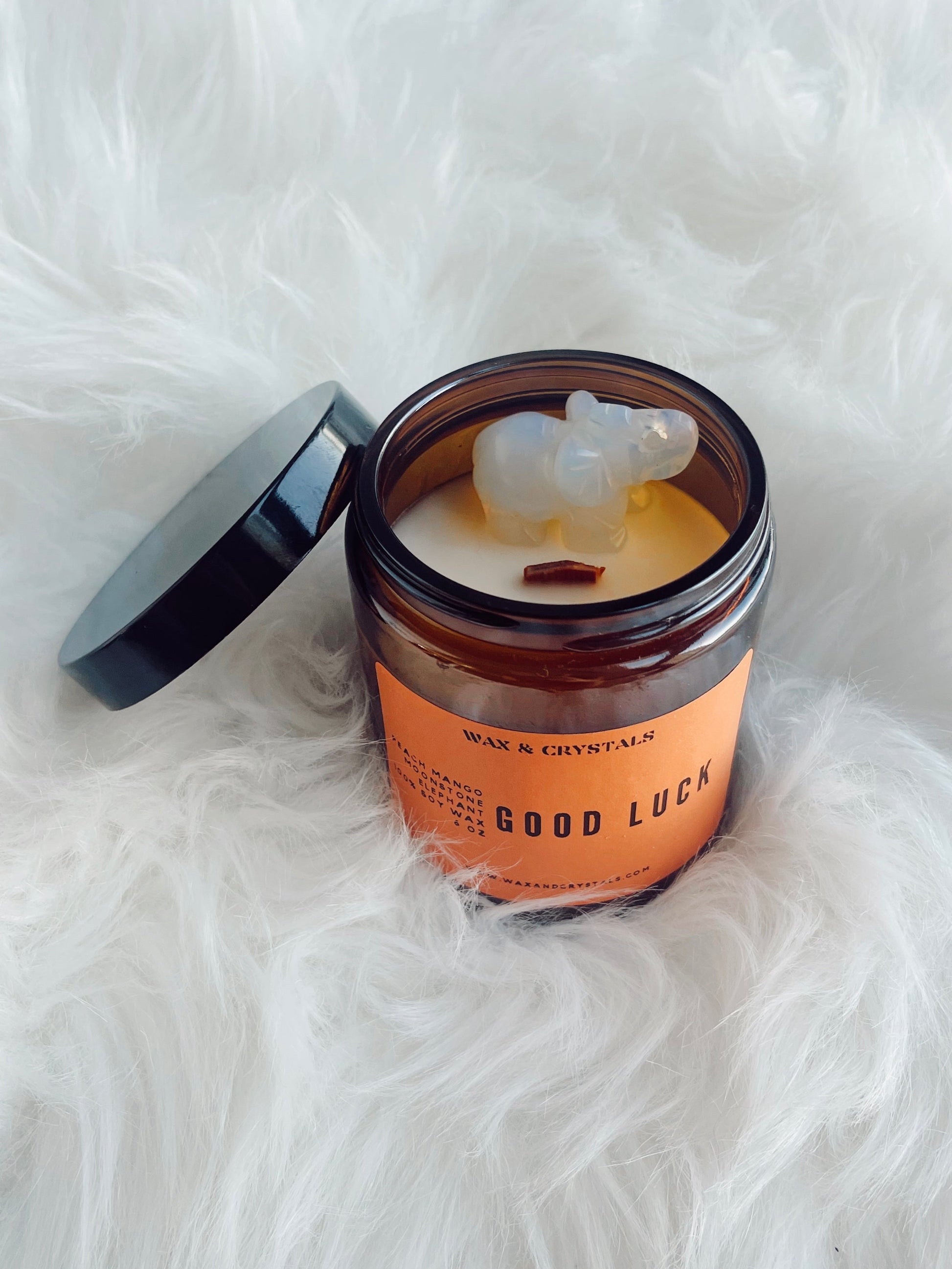 Good Luck Soy Wax Candle with Elephant Moonstone Crystal