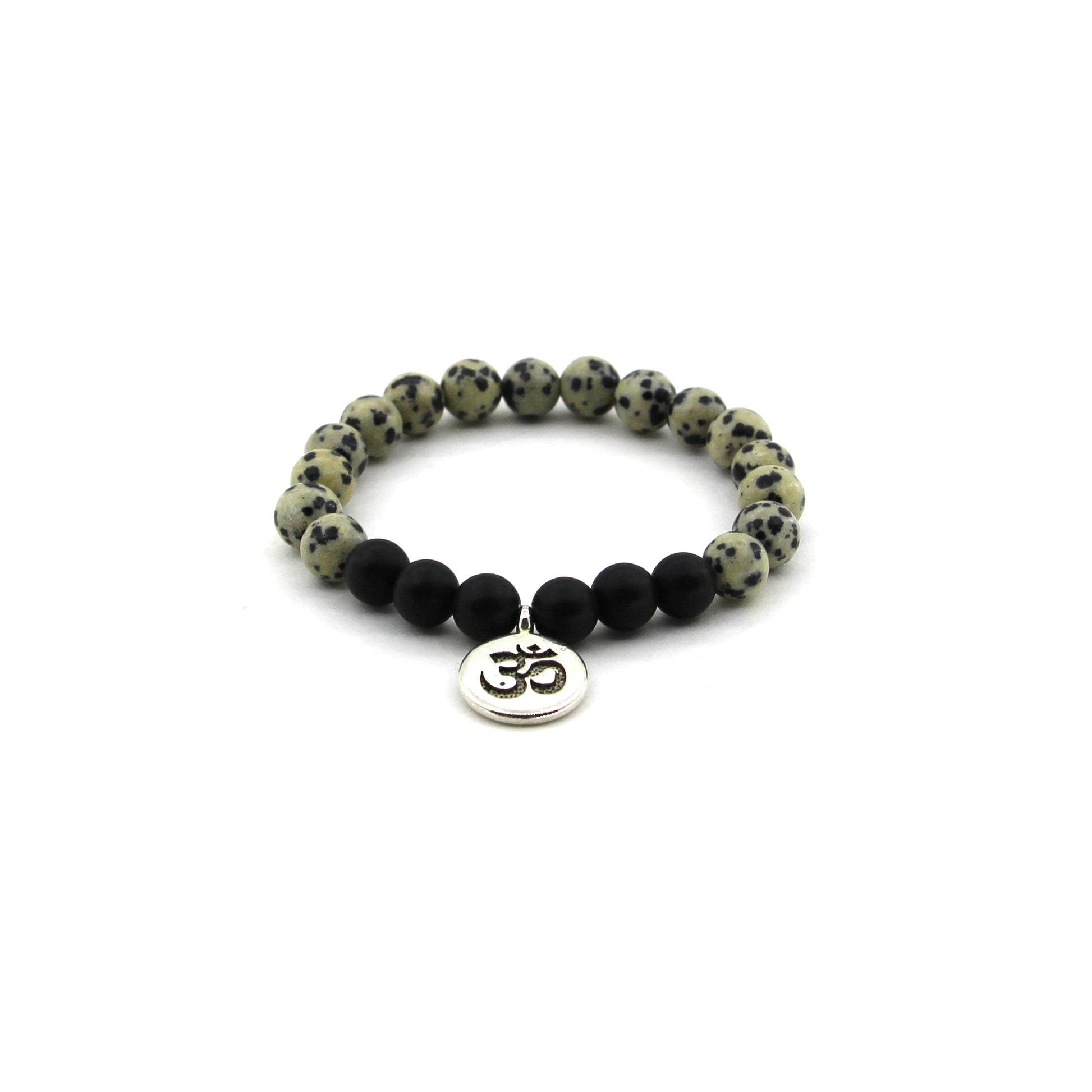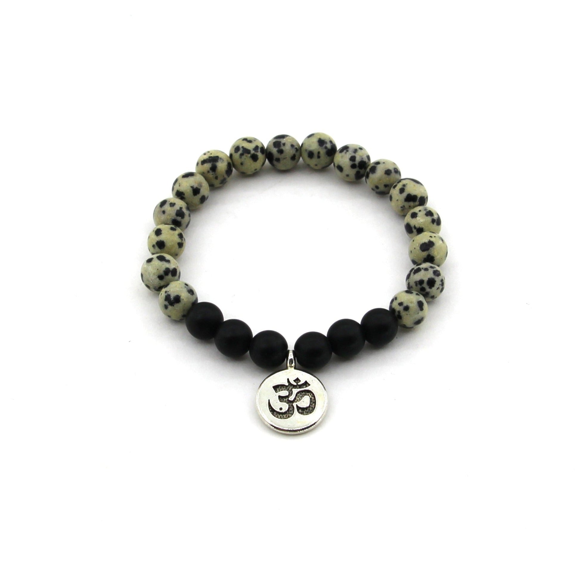 Joy Manifestation - Dalmatian Jasper, Obsidian, OM Symbol - Gemstone Bracelet