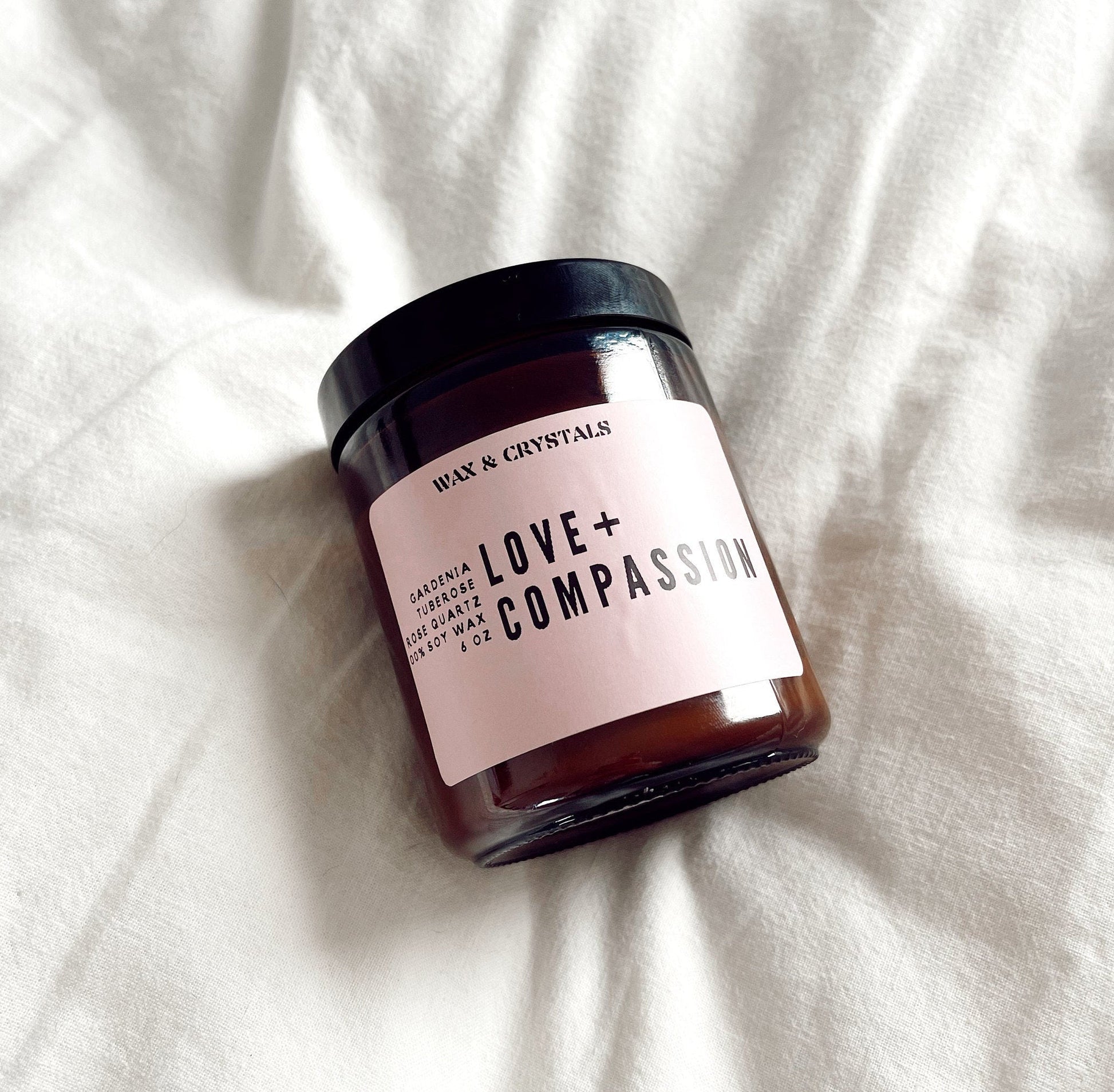 Love and Compassion Soy Wax Candle with Rose Quartz Crystal