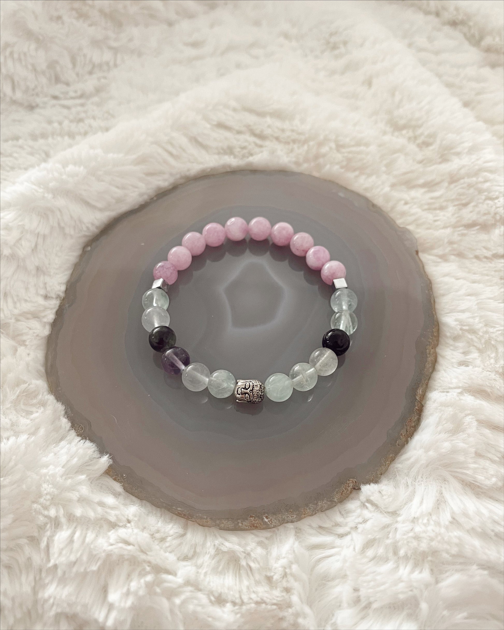 Mental Focus & Clarity - Fluorite, Lepidolite, Hematite, Buddha - Gemstone Bracelet