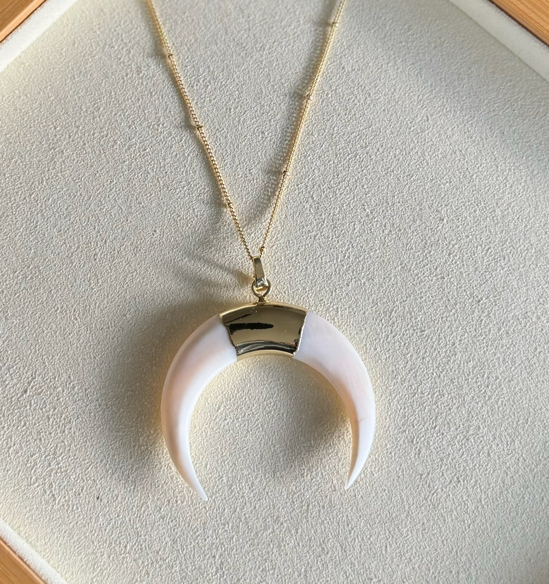 Mother of Pearl Crescent Moon Necklace - Gold