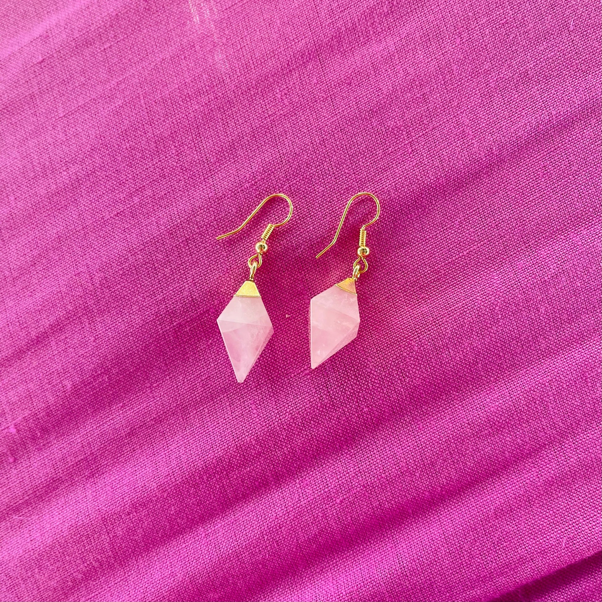 Rose Quartz Earrings - Gold